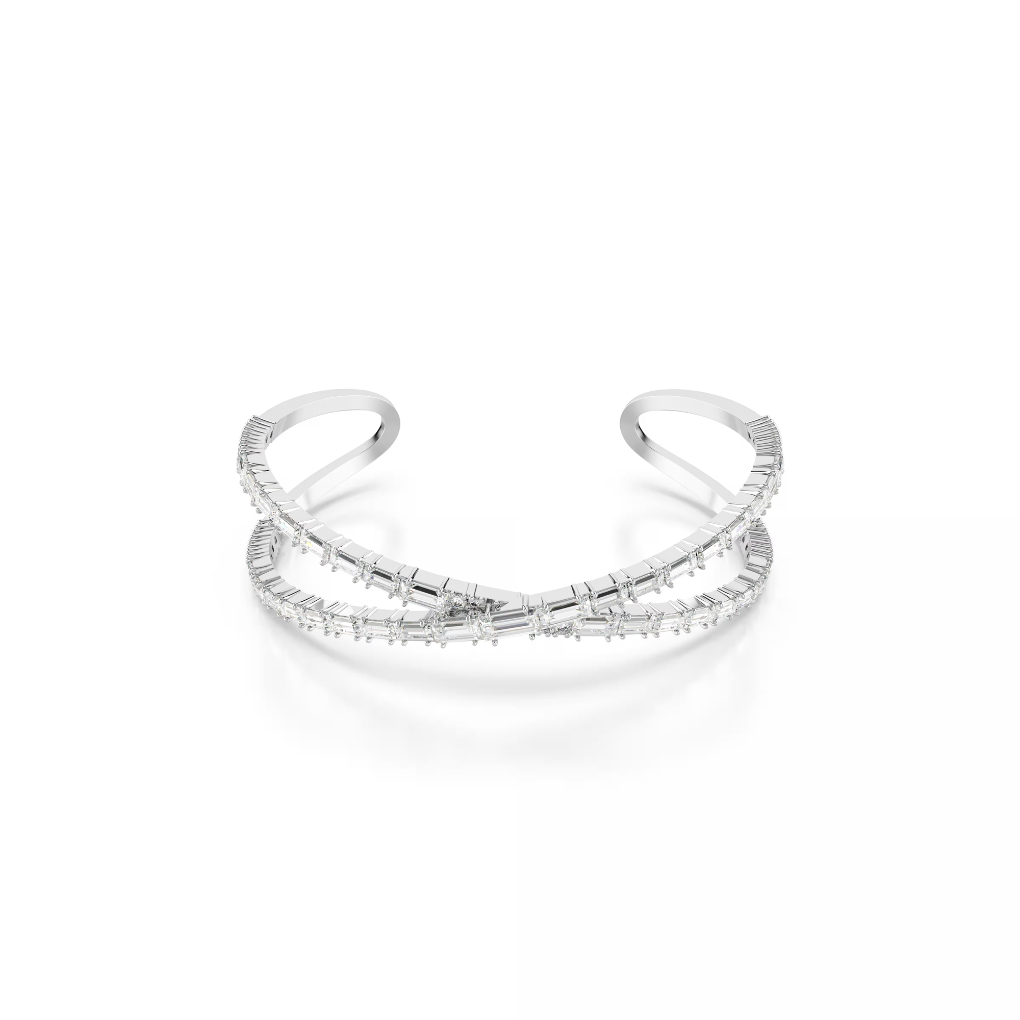 Abbraccia la natura infinita del tempo con questo straordinario bracciale rigido Hyperbola. Questo gioiello placcato rodio si ispira al motivo dell’infinito e si avvolge a spirale intorno al polso con una serie di Swarovski Zirconia trasparenti, magistralmente montati per creare dettagli incredibili. Un modo perfetto per esprimere sia il lato stravagante che quello aggraziato del tuo stile.