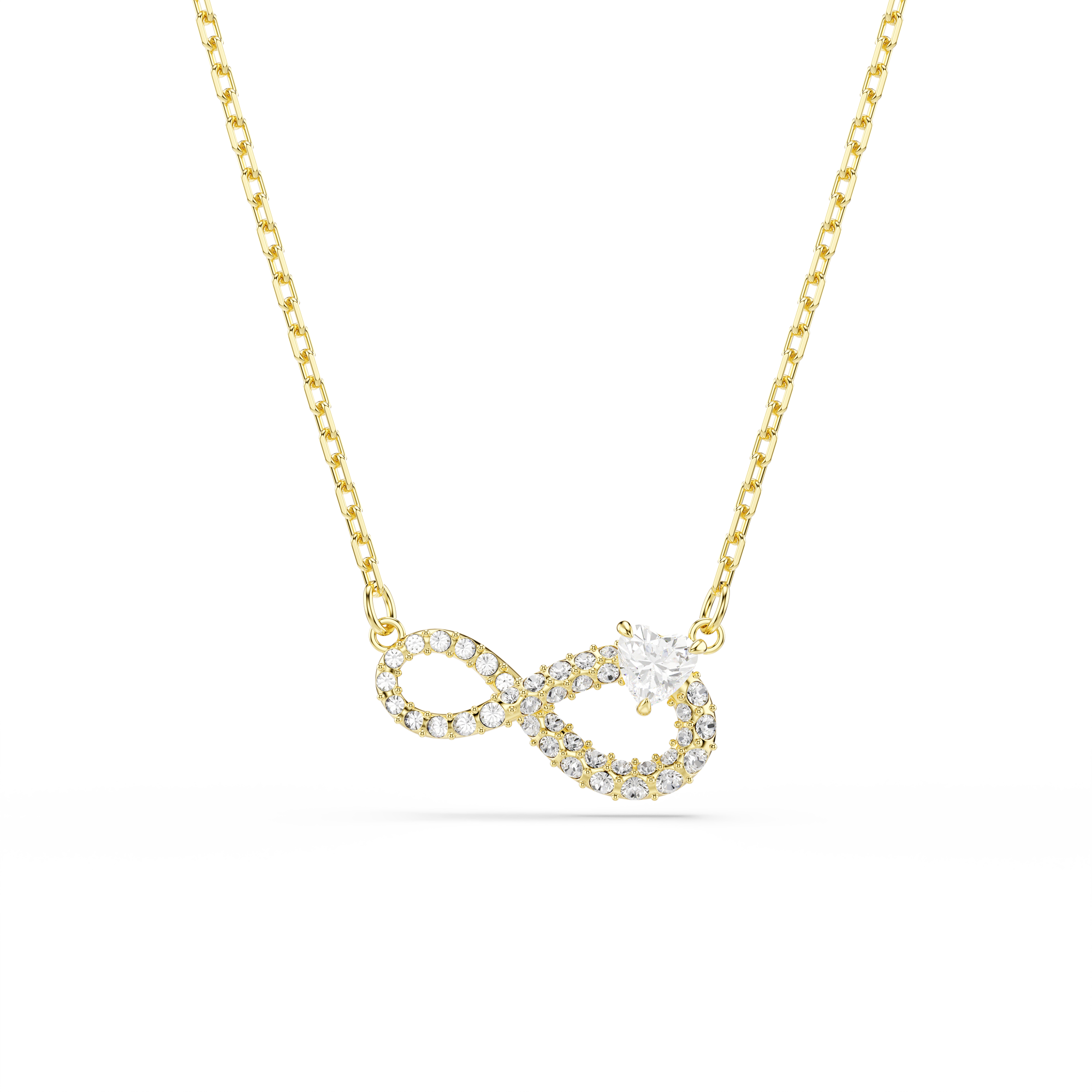 La collana Swarovski sfoggia un simbolo dell’infinito su una catena placcata in tonalità oro ed è la perfetta espressione dell’amore eterno. Una Swarovski Zirconia trasparente a forma di cuore è inoltre incastonata sull’elemento dell’infinito, aggiungendo un tocco romantico al design.