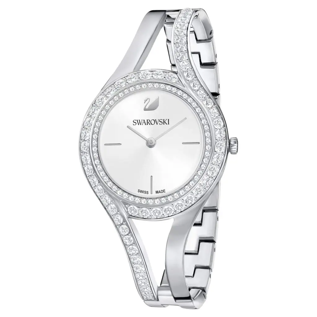 Eleva il tuo stile per l’estate con questo orologio fluido e moderno. Con due linee di pavé sulla lunetta e intagli asimmetrici, è una fresca rivisitazione del classico scintillio. La cassa e il bracciale in acciaio inossidabile e completano alla perfezione i 112 Clear Crystal, così come il quadrante bianco argento con motivo radiale. Indipendentemente dall’occasione, aggiungerà un tocco di modernità a uno stile senza tempo. La lunghezza del bracciale è facilmente regolabile. Specifiche: Cassa 30 mm; impermeabile fino a 50 m; Swiss Made.
