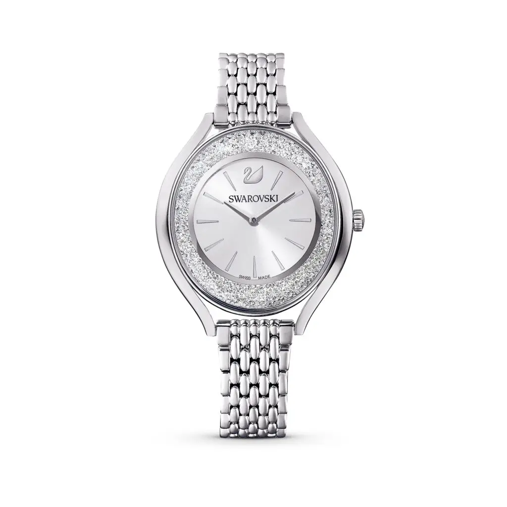 Orologio Crystalline Aura fabbricato in Svizzera con bracciale in metallo, tono argentato e realizzato in accaio indossabile.